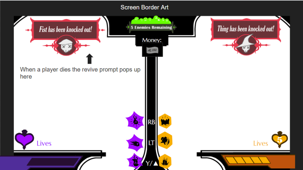 In the beginning, I helped to create a vision for how our game should feel to play by testing old builds and going over feedback. My role was to do research and come up with a plan on how to add to these new abilities and existing abilities to make every action satisfying and readable by the players. I was also in charge of working with the artists to get new UI assets done and place them in a way that was concise and understandable. The research I had done, as well as my collaborations with the art team, led to me working on prototyping the effects and UI needed for our vision. Once the art was done for them, I also led the process of implementing the final versions and coding them to work properly with the game systems and events. At the bottom of this page are videos showing off early testing of these effects.